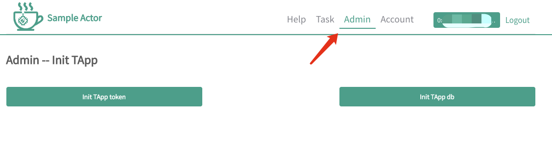 From the new Admin page, click the two buttons "Init AppToken" and "Init TApp db" to simulate deploying the TApp.
