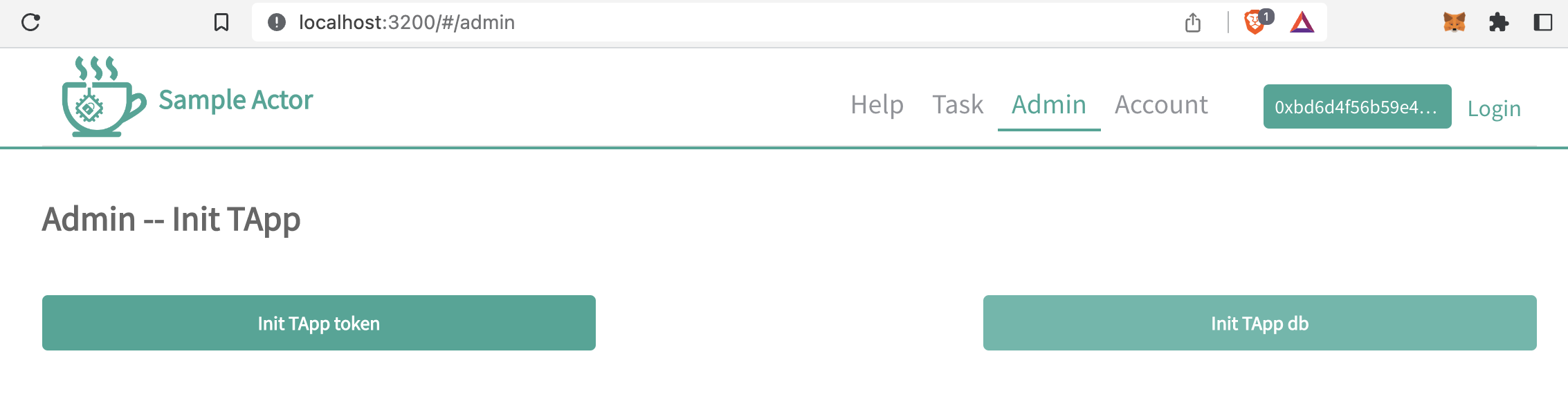 Because this is a brand new state, please make sure you click the Init TApp token and Init TApp db buttons located in the Admin page before doing anything else.